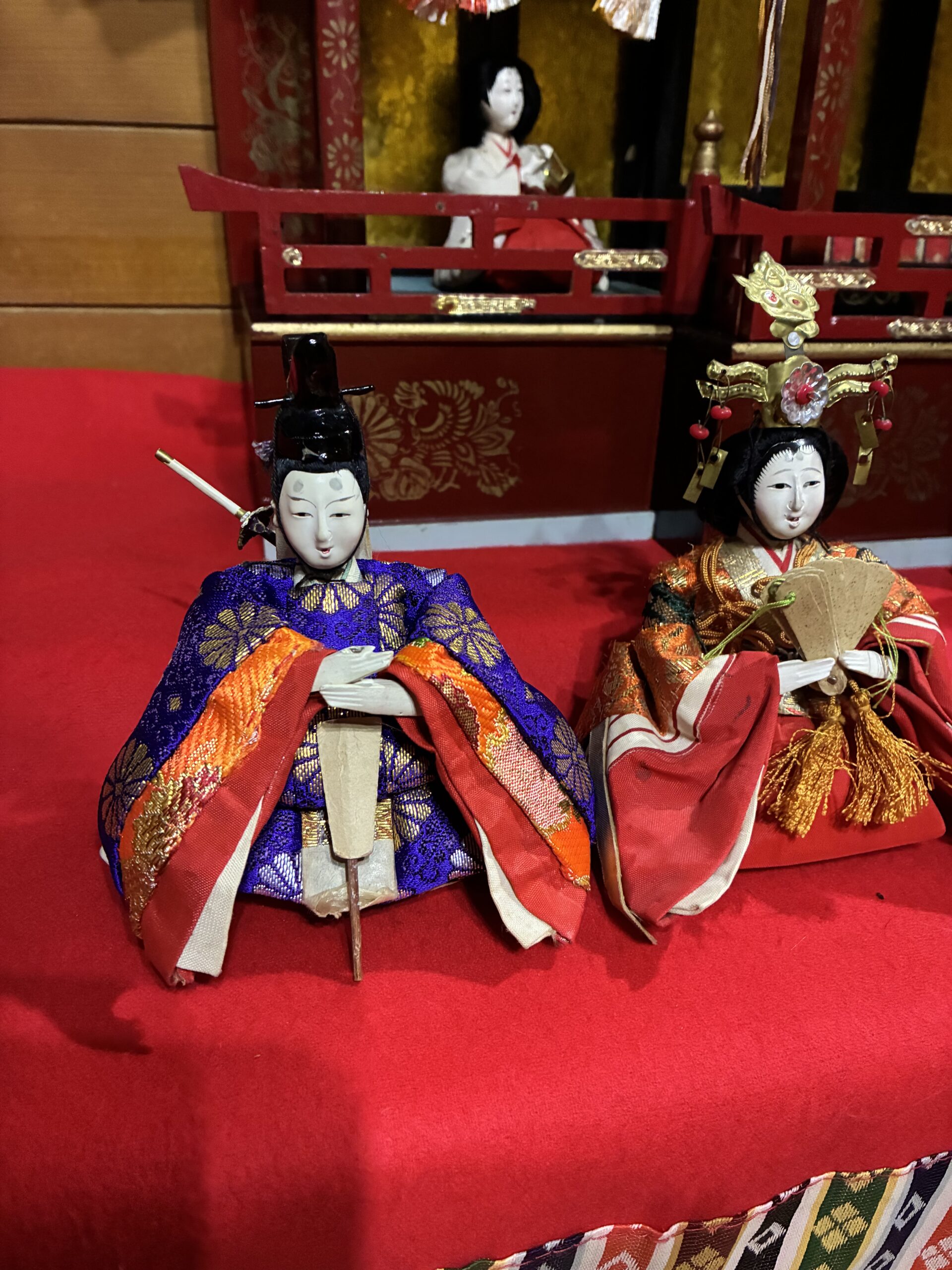 良く見てもらったらわかるけど、お内裏様は、イケメンです。実は,着物が大好きな次女が、ハギレやで布を買ってお内裏様の衣装を新調しました。(多分15.6年前に)