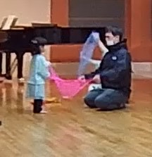 お父さんお母さんがとっても協力的で,楽しんでリトミックできました。